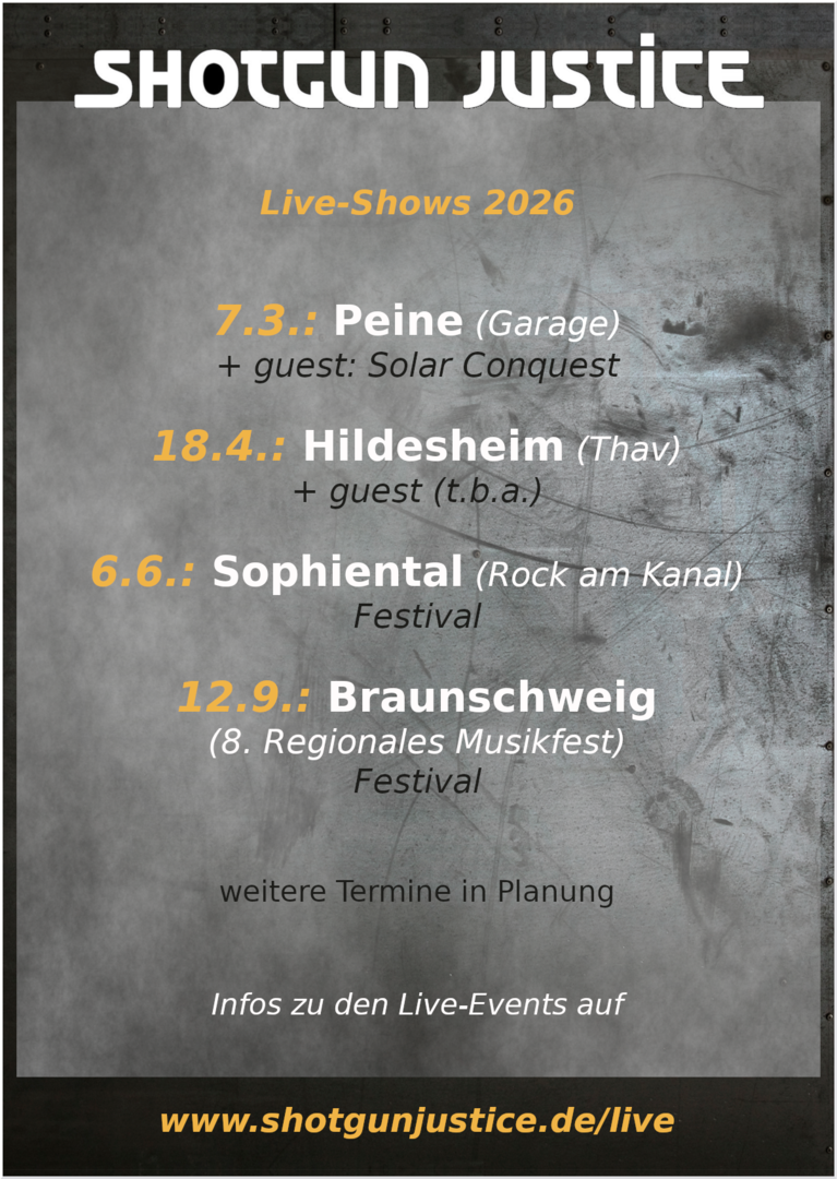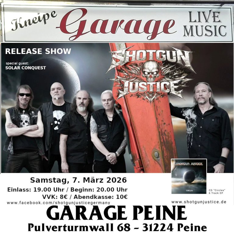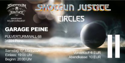 Mit „Circles“ präsentiert Shotgun Justice ein Album, das kompromisslos zeigt, wofür die Band steht: authentischer, handgemachter Heavy Metal mit Haltung. In nur fünf Songs und einer Spielzeit von rund dreißig Minuten entfaltet sich ein musikalischer Kosmos, der eindrucksvoll beweist, dass Klasse wichtiger ist als Masse. Jeder Track wirkt wie ein eigenständiges Kunstwerk – sorgfältig komponiert, durchdacht arrangiert und emotional aufgeladen... [hier weiter]